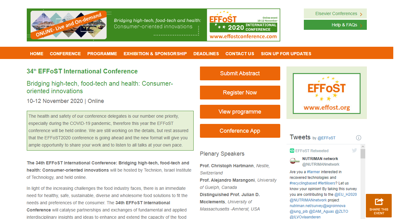 Every year the European Federation of Food Science and Technology (EFFoST) organises this prestigious academic food science and technology conference. This year the EFFoST2020 conference will be held online, due to the COVID-19 pandemic and associated health concerns.